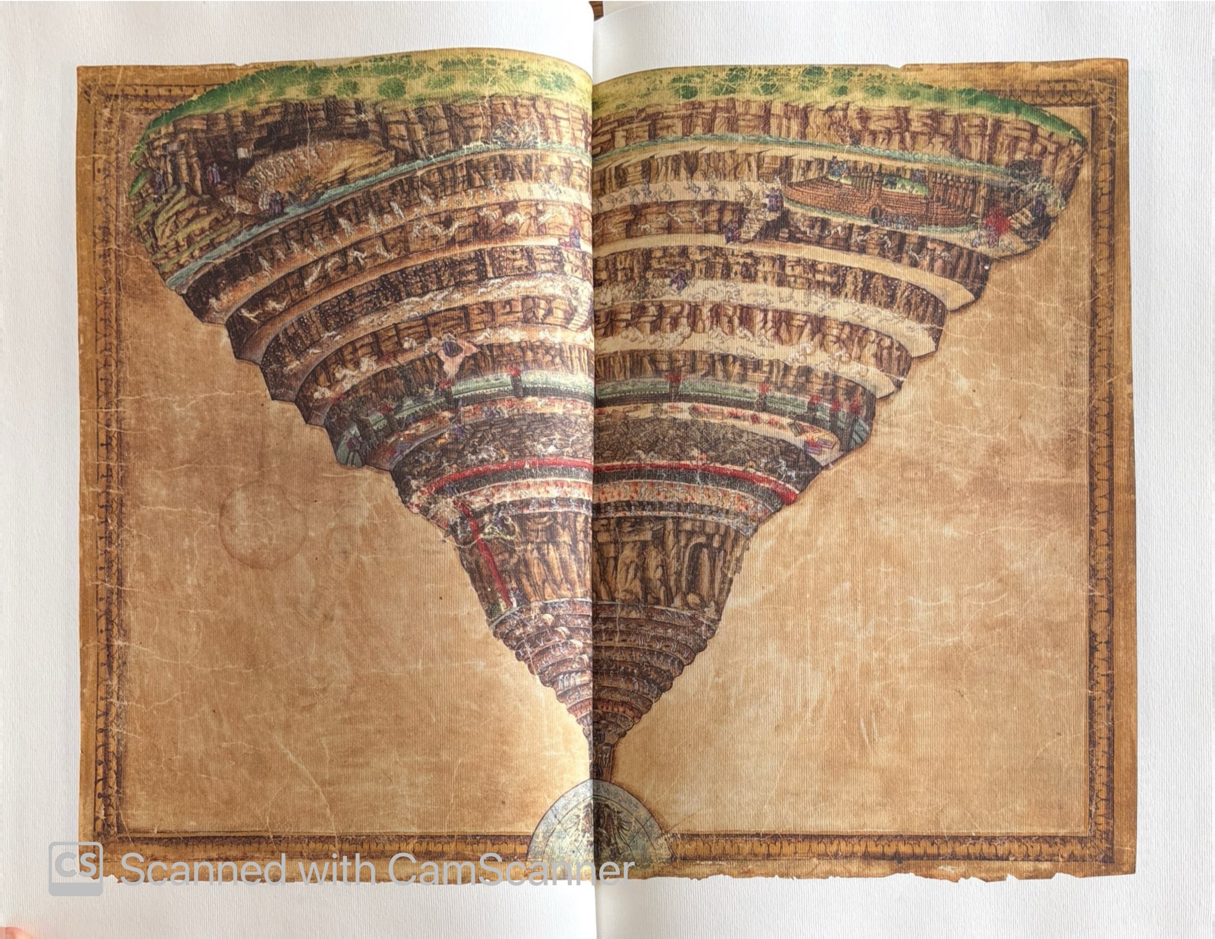 הקומדיה האלוהית של דנטה עם ציורים בצבעים של ויליאם בלייק על נייר משובח.